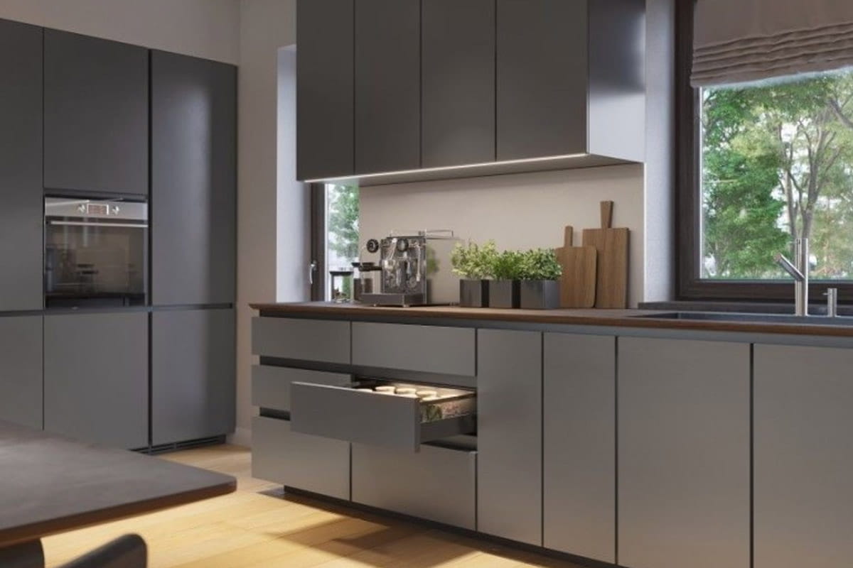 System VELLO to zaawansowane rozwiązanie do bezuchwytowych systemów meblowych, wpisujące się w nurt minimalistycznego designu. Bazuje na zestawieniu profili aluminiowych (pionowych i poziomych), które w całości przejmują funkcję otwierania frontów.