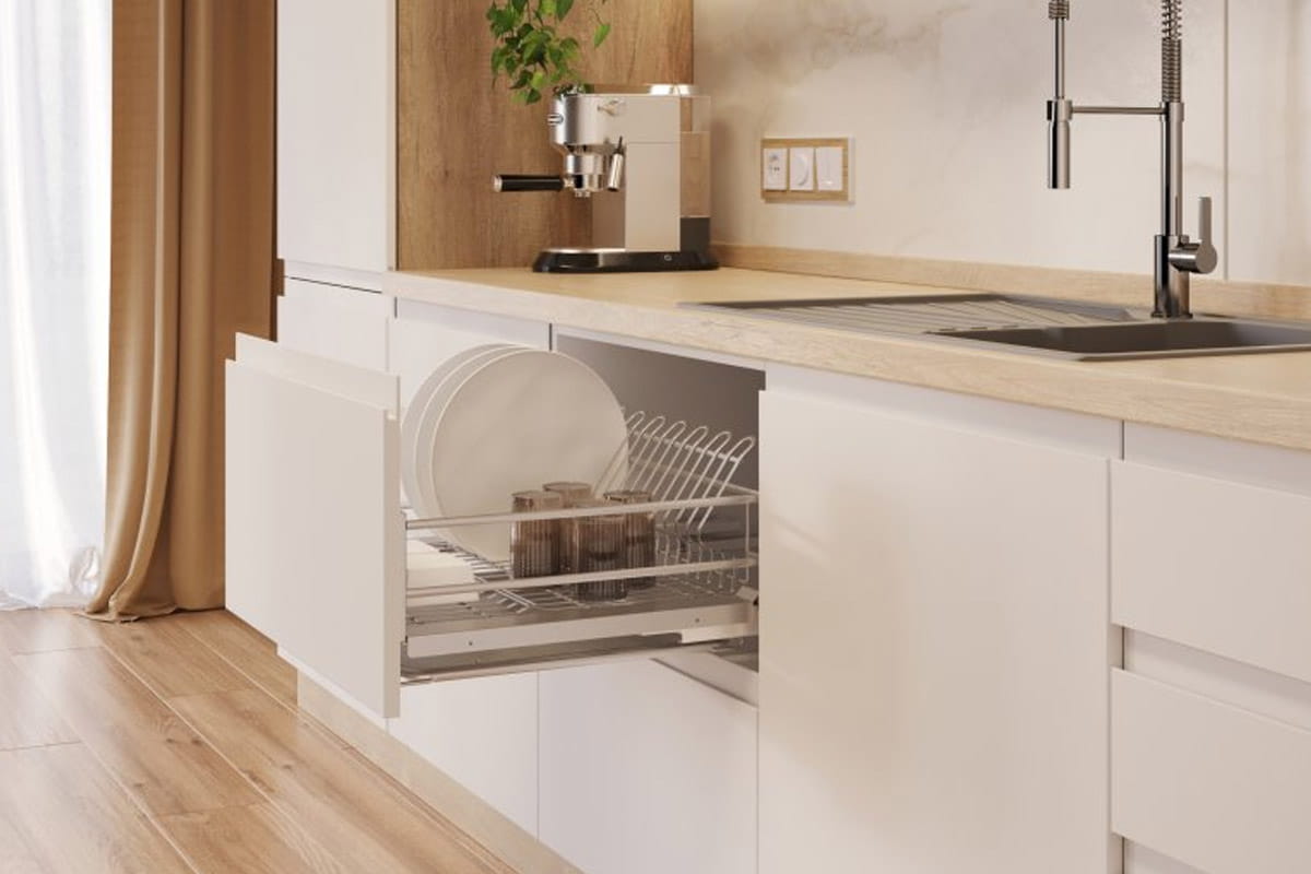 Szuflada MOVIX to stylowe i funkcjonalne rozwiązanie, które pasuje do każdej kuchni, dbając o idealny porządek w naczyniach. Wykonana z wysokiej jakości stali w kolorze chromu lub antracytu, łączy elegancki design z trwałością i odpornością na korozję. Dzięki dostępności w czterech rozmiarach (do szafek 600–900 mm), cichemu domykowi oraz udźwigowi do 30 kg, zapewnia najwyższy komfort użytkowania. Dodatkowo tacka na wodę ułatwia zachowanie czystości, a regulacja frontu w trzech płaszczyznach gwarantuje perfekcyjne dopasowanie do zabudowy.