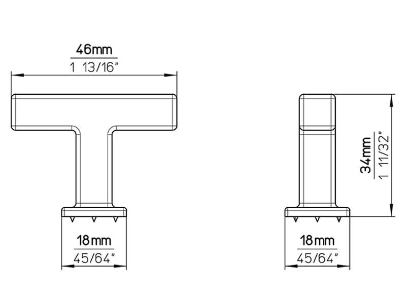 Gałka meblowa Siro 2520 to elegancki i solidny model z serii T-Bar, wykonywany z metalu, o wymiarach ok. 46 mm długości, 34 mm wysokości i około 18 mm szerokości. Dostępna jest w różnych wykończeniach, takich jak chrom na wysoki połysk, szczotkowana stal nierdzewna, starodawny mosiądz/brąz, antyczne złoto.