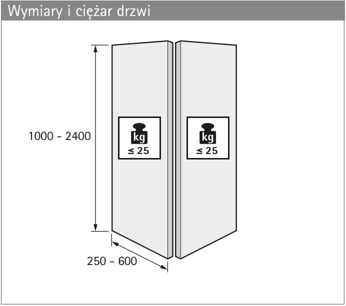 - 1 szt. elementu jezdnego max. 25 kg bez automatyki zamykania