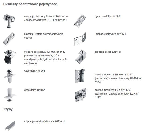 Zastosowanie: lekkie drzwi składane na jedną lub dwie strony, szafy wysokie, zabudowa wnęk, drzwi harmonijkowe, drzwi przejściowe