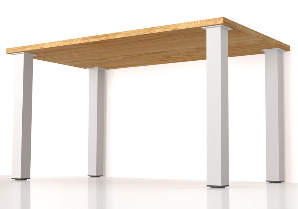 Elegancka i solidna noga o wysokiej jakości wykonania, z profilem kwadratowym 60 × 60 mm. Została wyprodukowana z aluminium o grubości ścianki 1,4 mm, co zapewnia jej dużą stabilność. W górnej części znajduje się centralnie zamocowana aluminiowa płytka o grubości 5 mm, wyposażona w cztery otwory montażowe. Maksymalne obciążenie nogi to 60 kg.