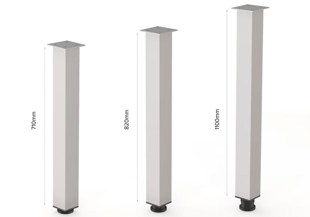 Elegancka i solidna noga o wysokiej jakości wykonania, z profilem kwadratowym 60 × 60 mm. Została wyprodukowana z aluminium o grubości ścianki 1,4 mm, co zapewnia jej dużą stabilność. W górnej części znajduje się centralnie zamocowana aluminiowa płytka o grubości 5 mm, wyposażona w cztery otwory montażowe. Maksymalne obciążenie nogi to 60 kg.