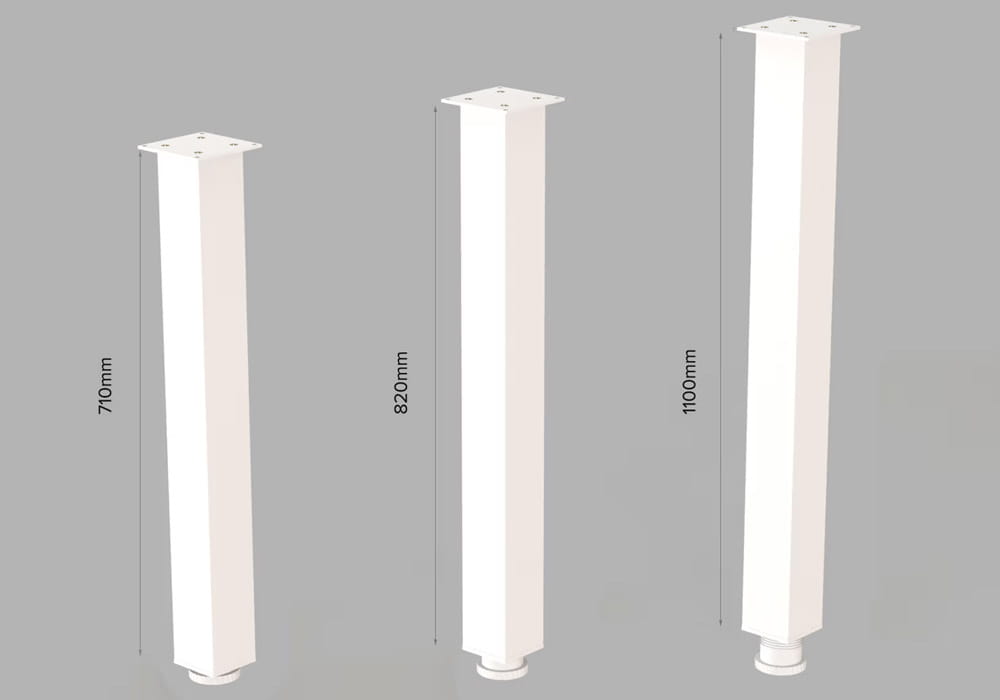 Elegancka i solidna noga o wysokiej jakości wykonania, z profilem kwadratowym 60 × 60 mm. Została wyprodukowana z aluminium o grubości ścianki 1,4 mm, co zapewnia jej dużą stabilność. W górnej części znajduje się centralnie zamocowana aluminiowa płytka o grubości 5 mm, wyposażona w cztery otwory montażowe. Maksymalne obciążenie nogi to 60 kg.