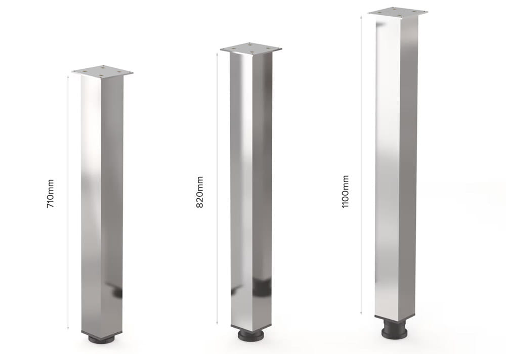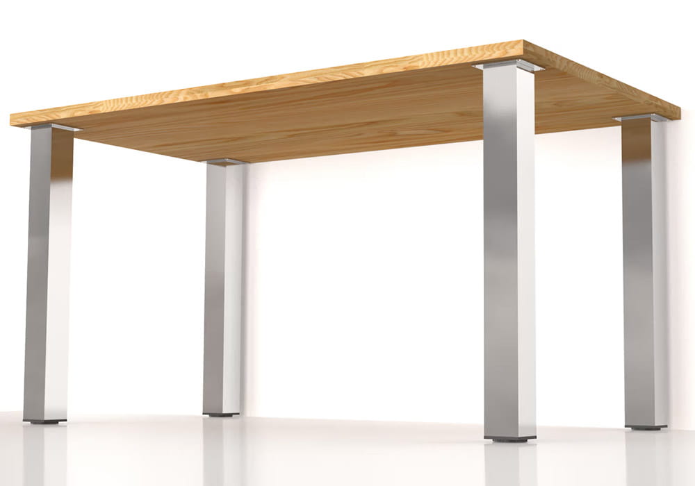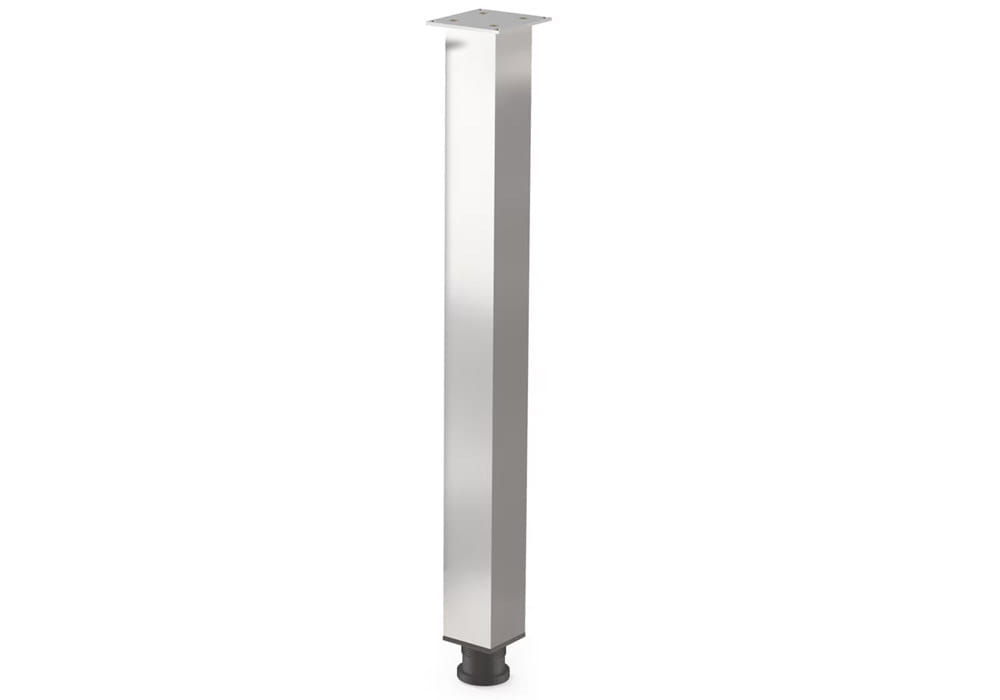 Elegancka i solidna noga o wysokiej jakości wykonania, z profilem kwadratowym 60 × 60 mm. Została wyprodukowana z aluminium o grubości ścianki 1,4 mm, co zapewnia jej dużą stabilność. W górnej części znajduje się centralnie zamocowana aluminiowa płytka o grubości 5 mm, wyposażona w cztery otwory montażowe. Maksymalne obciążenie nogi to 60 kg.