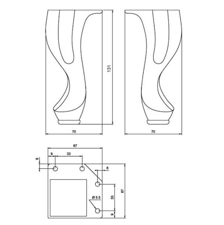- Płytka montażowa metalowa: 67 mm x 67 mm