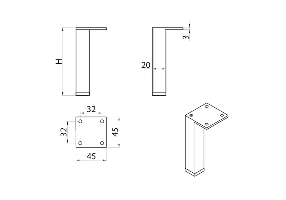 - Wymiary nóżki: 20 x 20 mm