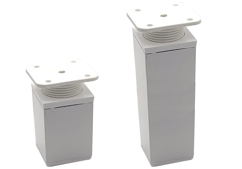 Stopki wykonane są z profilu aluminiowego o przekroju kwadratu o wymiarach 40x40mm. Na obu końcach znajdują się elementy wykonane z wysokiej jakości tworzywa sztucznego. Umożliwia to regulację wysokości stopki w szerokim zakresie.
