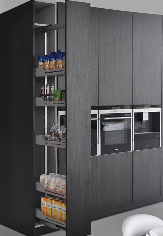 Wyciąg wysoki do szafki typu cargo o szerokości frontu 300 mm i wysokości ramy w przedziale 1600-1900 mm. Prowadnica z pełnym wysuwem. Komplet dostępny jest z koszami w linii Libell z matami antypoślizgowymi. Koszyki można zawieszać na ramie w odległości co 10 cm. Wyciąg posiada system cichego domykania. W celu optymalnego funkcjonowania systemu zaleca się stosowanie hamulca Soft Stopp Pro 01.265.S, który wyhamuje cargo w momencie otwierania. W przypadku otwierania szafki bezuchwytowo należy osobno zamówić system elektryczny eTouch.