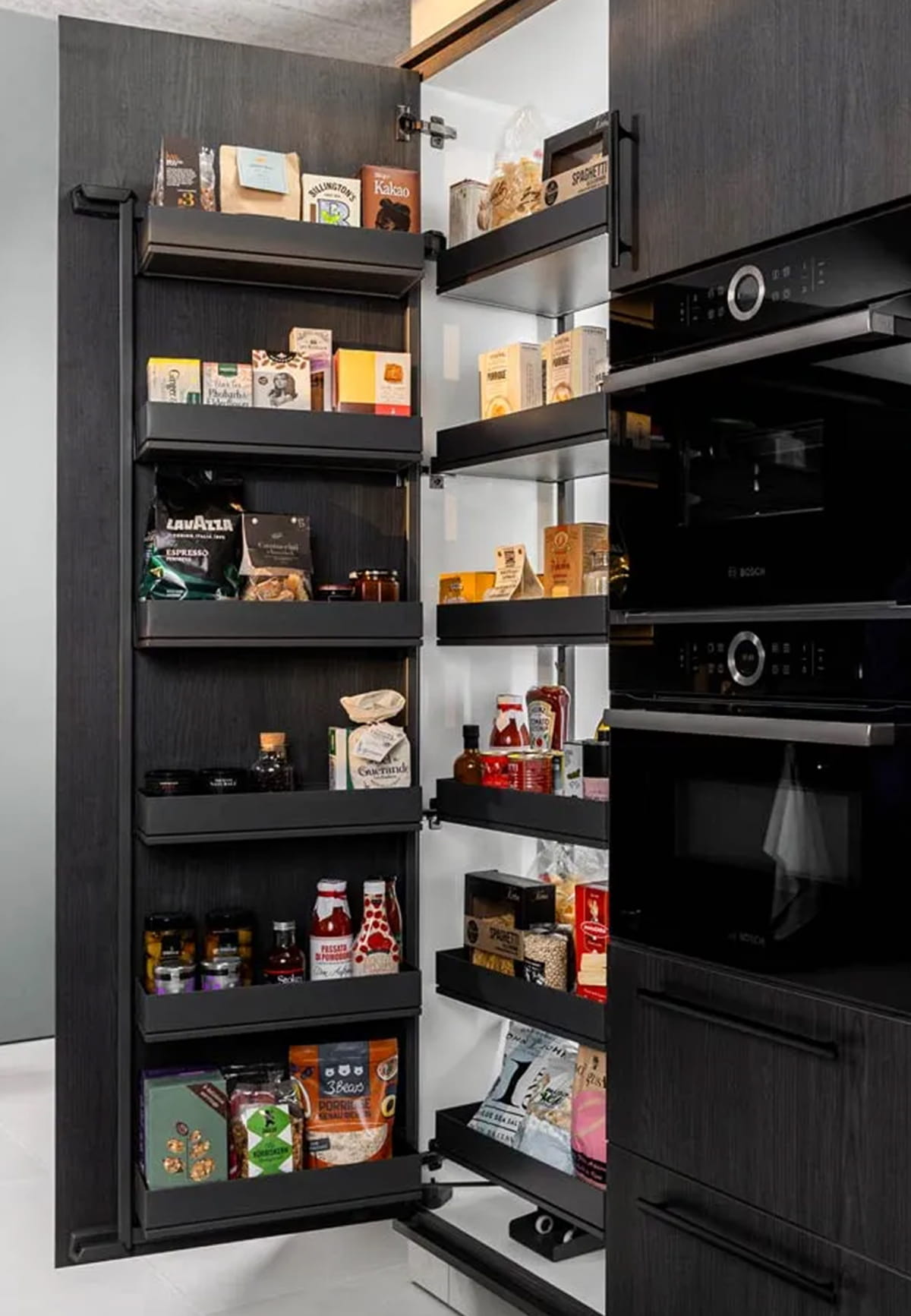 TANDEM III z linii ARENA Pure to nowoczesny system do przechowywania żywności, łączący funkcje lodówki i spiżarni. Dzięki inteligentnemu mechanizmowi wysuwu pozwala przechowywać wszystkie zapasy w jednej szafce, zapewniając świetną widoczność i wygodny dostęp.