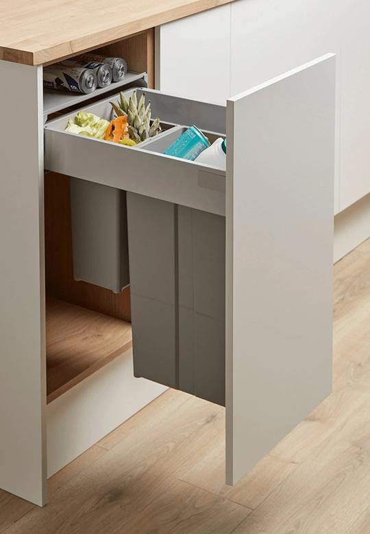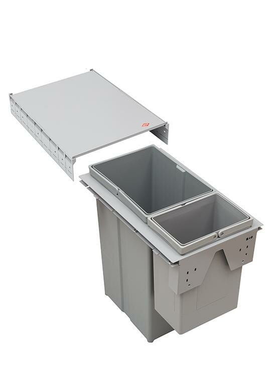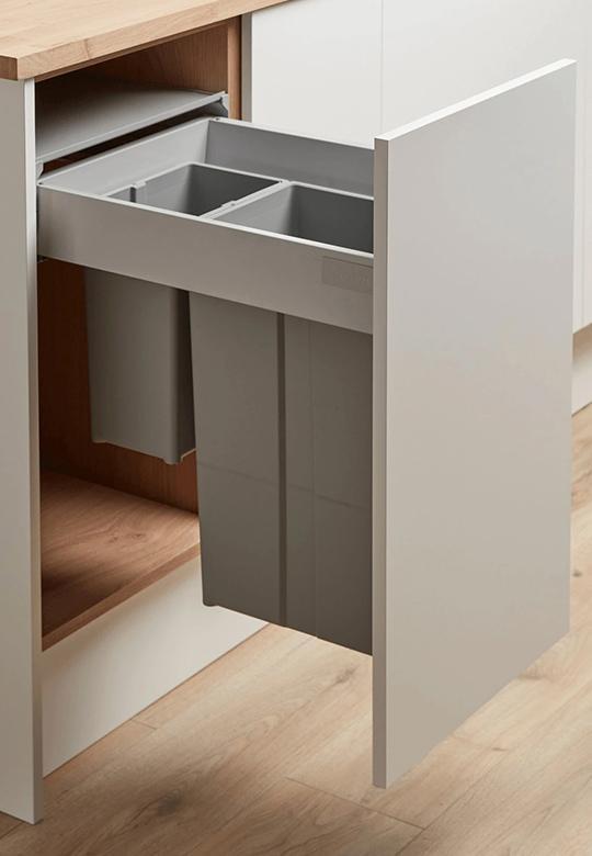 Pullboy Z 400 mm (37L) to praktyczny sortownik na śmieci do szafki kuchennej z wysokim frontem. Składa się z dwóch pojemników (29 l + 8 l) osadzonych w metalowej ramie ze stabilizatorem. System mocowany jest do frontu – przy otwieraniu kosze wysuwają się automatycznie, ułatwiając segregację.
