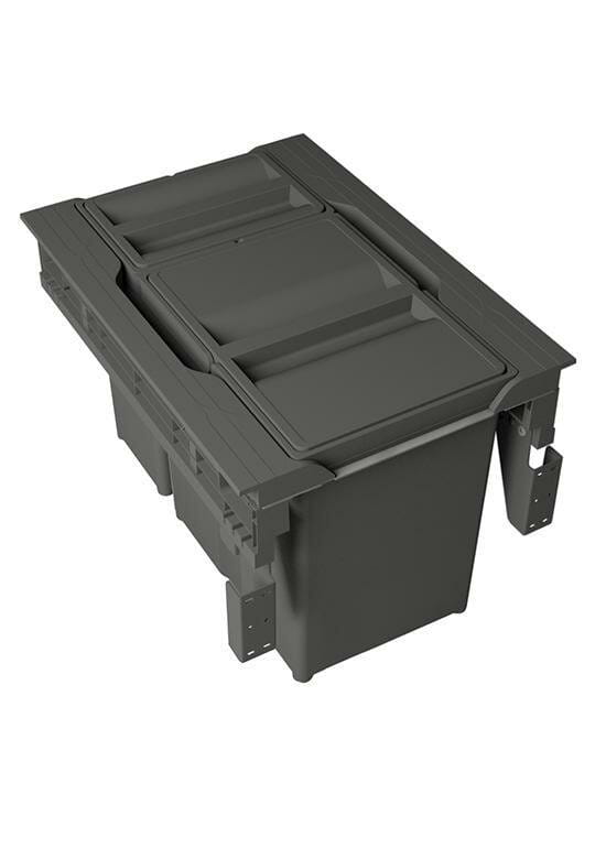 Kosz na śmieci jest do szafki o szerokości 40 cm, idealnie będzie pasował w szafce bez zlewozmywaka. Pojemniki posiadają szerokie uchwyty i własne pokrywki. Pojemniki wykonane są z dobrego i wytrzymałego tworzywa sztucznego, w kolorze antracytowym a dzięki podwójnym wzmocnionym uchwytom są bardzo łatwe do wyciągnięcia, bardzo solidne i trwałe.
