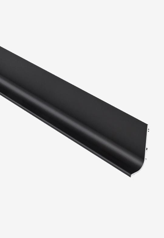 Listwa korytkowa pojedyncza pozioma L, anodowana w kolorze czarnym. System profili dedykowany jest głównie do mebli kuchennych, ale znajdzie zastosowanie również w np. w meblach biurowych lub garderobianych.
