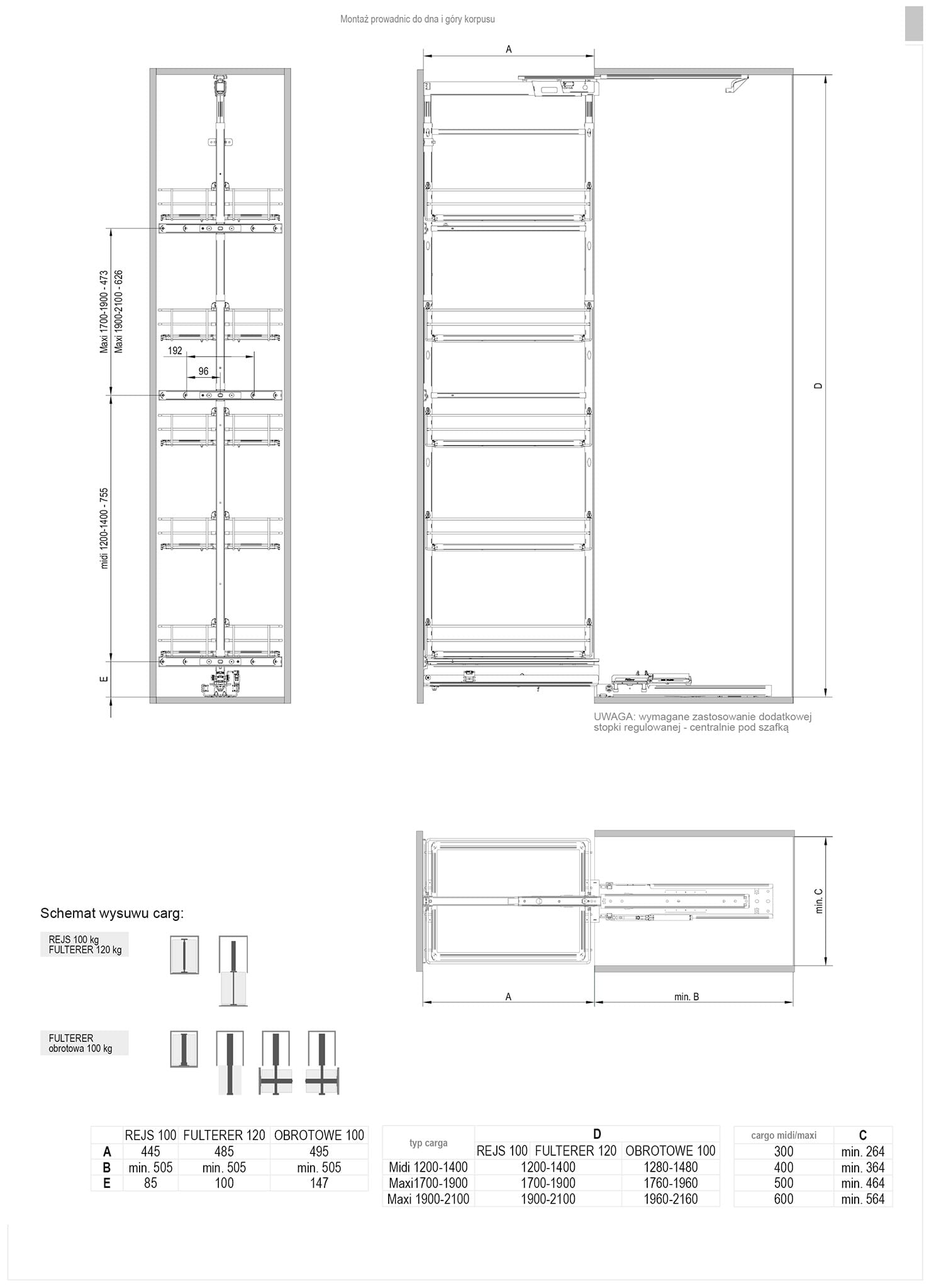Cargo Maxima PURO maxi dolne i boczne dostosowane do szafek wysokich, zwłaszcza modnych obecnie słupków, Cargo maxi zaprojektowano z myślą o strefie przechowywania. Rozwiązanie to pozwala stworzyć podręczną i wygodną spiżarkę nawet w niewielkiej kuchni. Wyposażone jest w 5 (wersja boczna) lub nawet 6 półek (wersja dolna), na których zmieszczą się zapasy – również te duże i ciężkie. W zależności od potrzeb możemy regulować wysokość położenia półek, a także – jeśli jest taka potrzeba – dodać kolejne. Cargo Maxi dostępne jest w kilku szerokościach: 150 i 200 mm (boczne) oraz 300 i 400 (dolne). Co ważne, dzięki zastosowaniu wytrzymałego systemu jezdnego, nawet największe i w pełni obciążone cargo wsuwa i wysuwa się z korpusu lekko i komfortowo.
