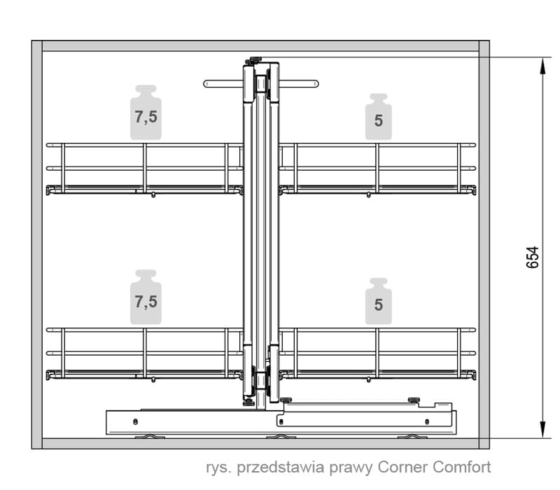 - Rodzaj carga: do szafki narożnej z frontem na zawiasach standardowych lub równoległych