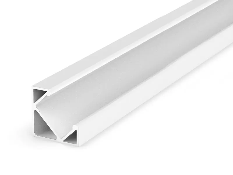 Profil nawierzchniowy kątowy jest profilem kątowym, przeznaczonym głównie do montowania w narożnikach mebli. Poprzez swój specjalny kształt, profil kieruje światło pod kątem 45°, przez co nie razi ludzi stojących naprzeciwko oprawy. Dzięki estetycznemu wykończeniu z każdej strony, profil również może być montowany blisko frontów szafek, kierując światło do ich środka. Wykonany z wysokiej jakości anodowanego aluminium, może pomieścić standardowe taśmy LED o szerokości 8 lub 10 mm. Będąc stylową obudową dla samych taśm LED, pełni również funkcję ich radiatora, dbając o dobre oddawanie ciepła.