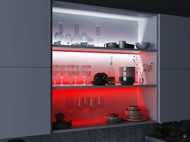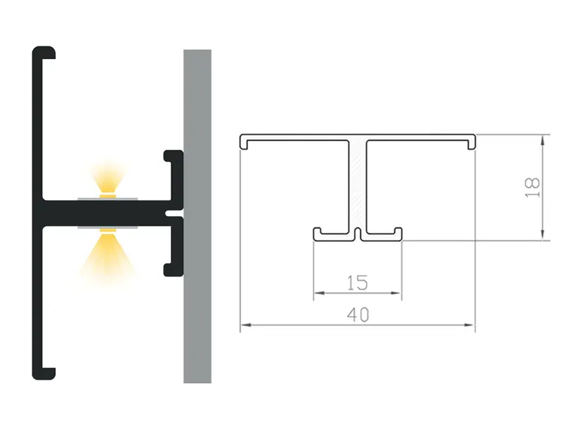 Profil „półkowy” jest profilem płaskim, którego głównym zastosowaniem jest montaż w szafach, garderobach oraz w szafkach kuchennych. Służy do podświetlenia przestrzeni użytkowej. Dzięki możliwości umieszczenia taśm LED zarówno z góry jak i z dołu, umożliwia podświetlenie przestrzeni nad i pod półką, co znacznie redukuje koszty oświetlenia, zmniejszając o połowę zużycie profila i taśmy LED. Prosty montaż za pomocą wkrętów lub taśmy dwustronnej umożliwia jego szybką instalację. Profil może służyć jako alternatywa do oświetlenia przestrzeni biurowych jak i mieszkalnych.
