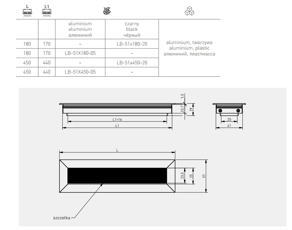 Przepust kabli MERIDA 51x450mm - anoda czarna