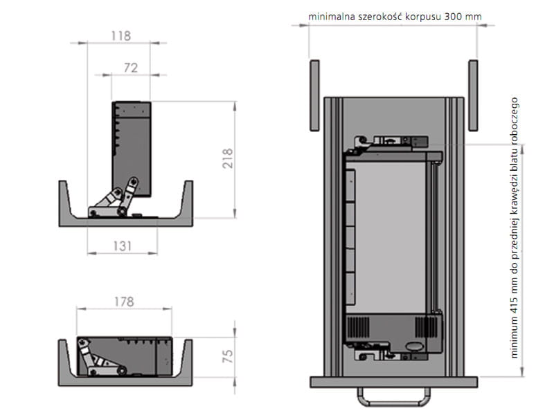* Wymiar (złożony): wys75 x szer178 x gł400 mm