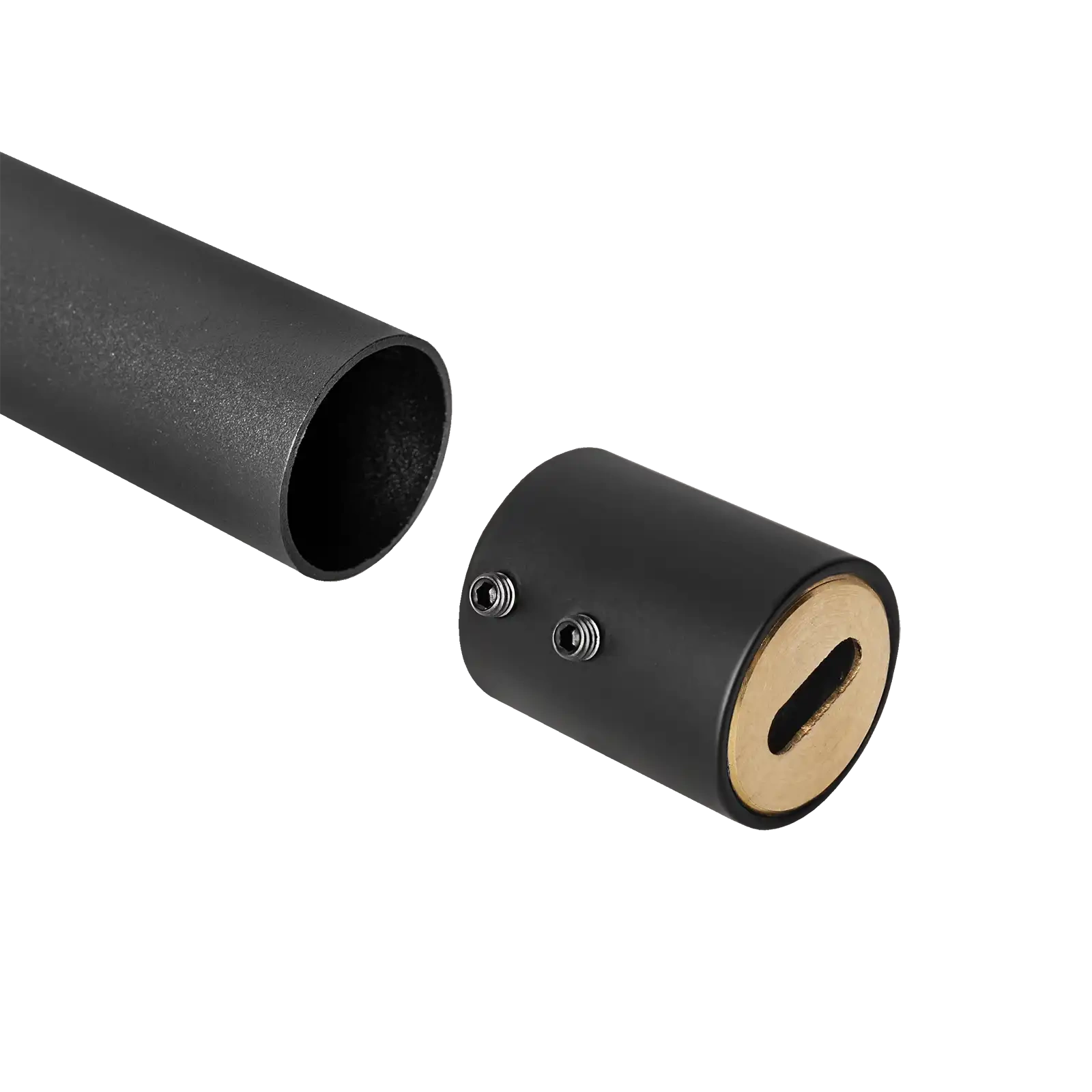 Złączka składa się z dwóch części: mosiężnej, gwintowanej podstawy umożliwiającej montaż do różnych powierzchni oraz pierścienia nakręcanego na podstawę. Stabilne zamocowanie drążka zapewniają dwie subtelne śruby imbusowe.