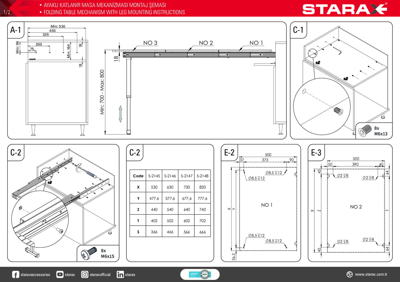 - Wysokość nogi po rozłożeniu: 682 - 782 mm