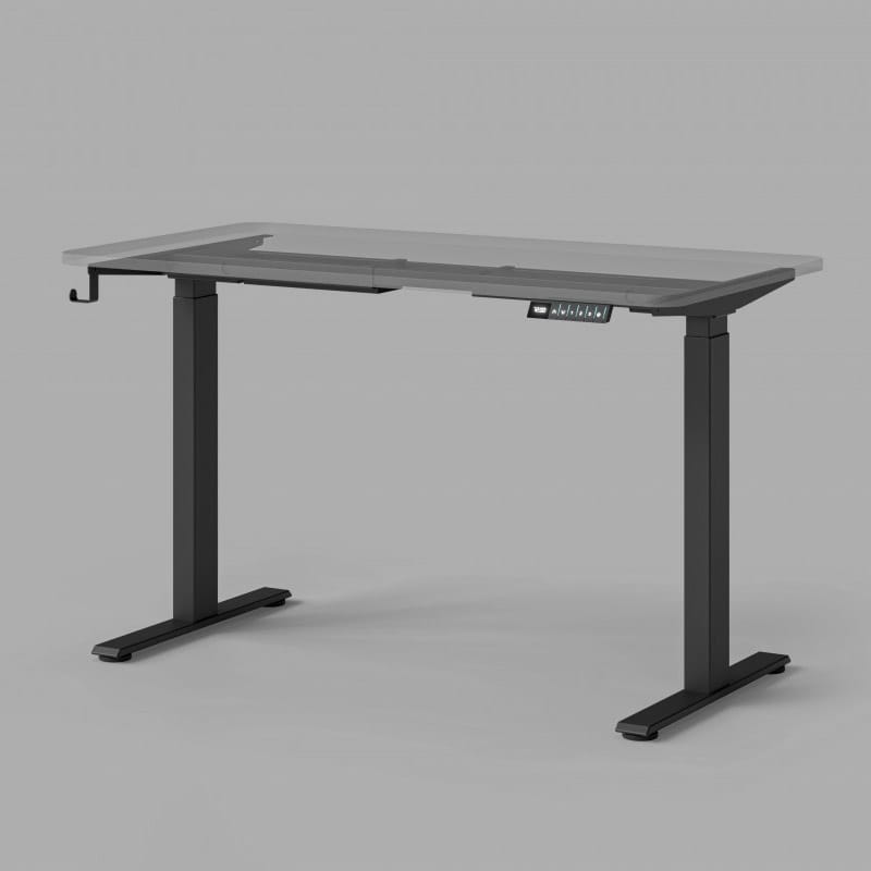 Regulowany stelaż wyposażony w dwa silniki zapewnia solidną i niezawodną bazę do codziennej pracy. Umożliwia płynną zmianę wysokości w zakresie 72–120 cm, a dzięki panelowi sterowania z wyświetlaczem LED pozwala zapisać aż 4 ulubione ustawienia. Dwubelkowa konstrukcja z profilu 75 × 45 mm gwarantuje wysoką stabilność oraz nośność do 100 kg.