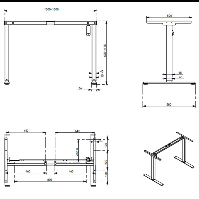 - Zakres wysokości: od 695 mm do 1175 mm (bez blatu).