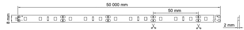 moc: 4,8 W/m ; 500 lm/m ; ilość diod 60/m ; najkrótszy odcinek 50 mm