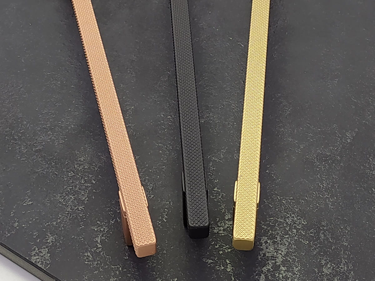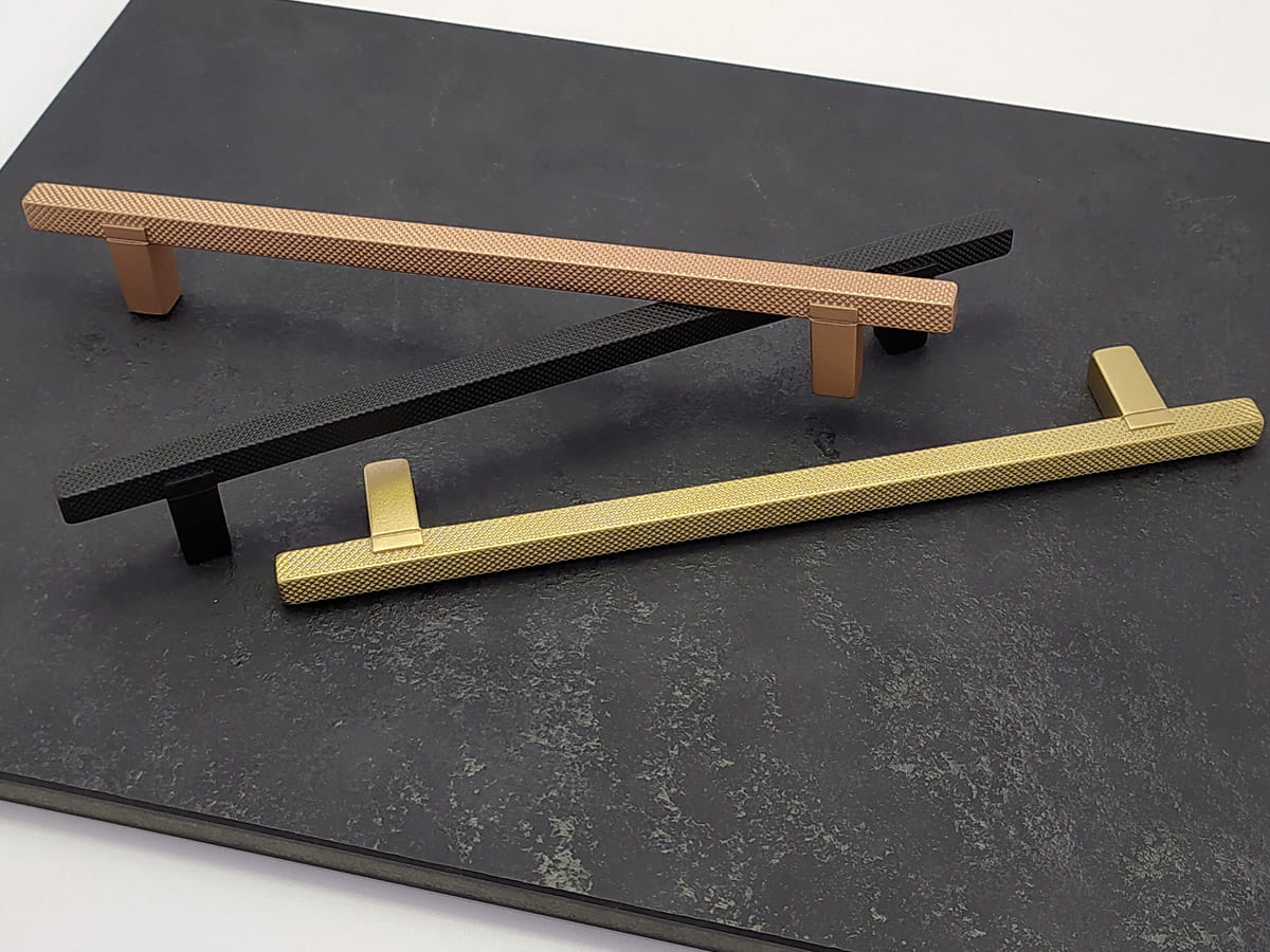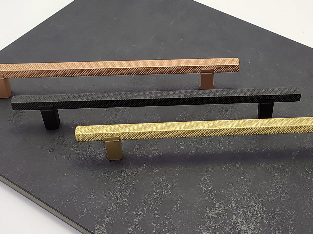 Kwadratowy uchwyt poddany operacji radełkowania (operacja tokarska polegająca na wygnieceniu na powierzchni wałka wzoru w postaci linii przy pomocy radełka, nadany wzór ma za zadanie wyeliminowanie poślizgu). Jednak poza czysto technicznym określeniem powstały w ten sposób uchwyt stał się bardzo atrakcyjny ze względu na formę, design i zastosowanie.