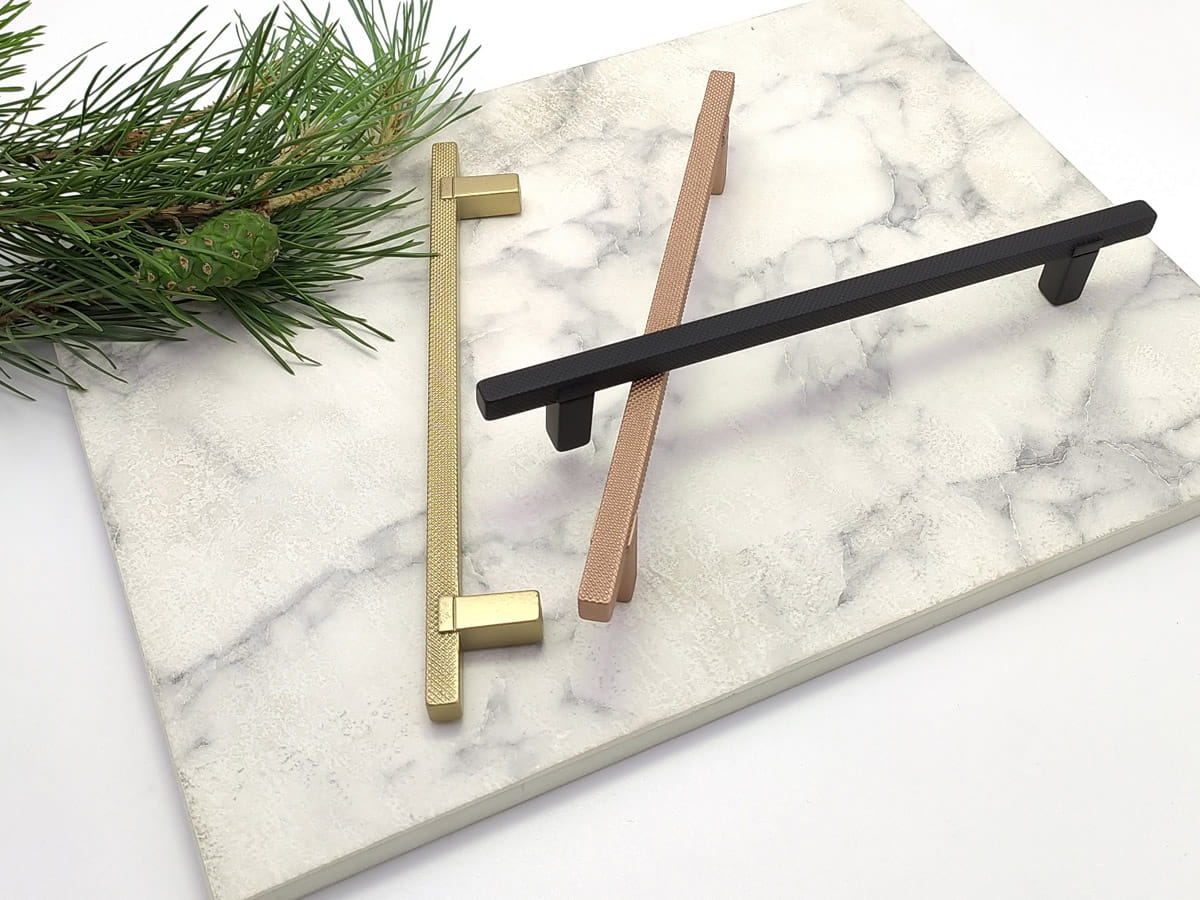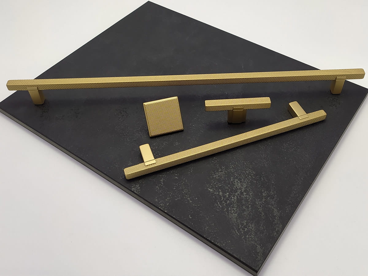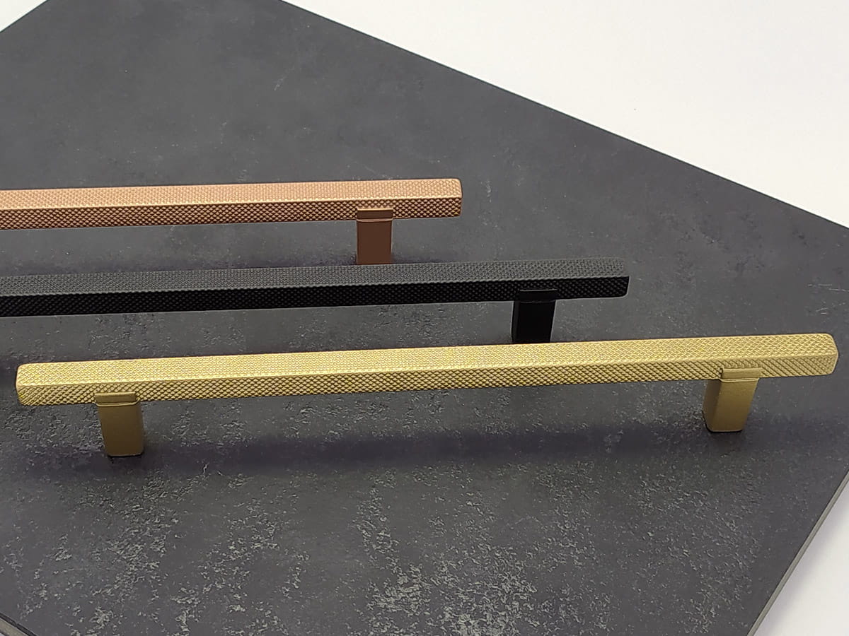 Kwadratowy uchwyt poddany operacji radełkowania (operacja tokarska polegająca na wygnieceniu na powierzchni wałka wzoru w postaci linii przy pomocy radełka, nadany wzór ma za zadanie wyeliminowanie poślizgu). Jednak poza czysto technicznym określeniem powstały w ten sposób uchwyt stał się bardzo atrakcyjny ze względu na formę, design i zastosowanie.