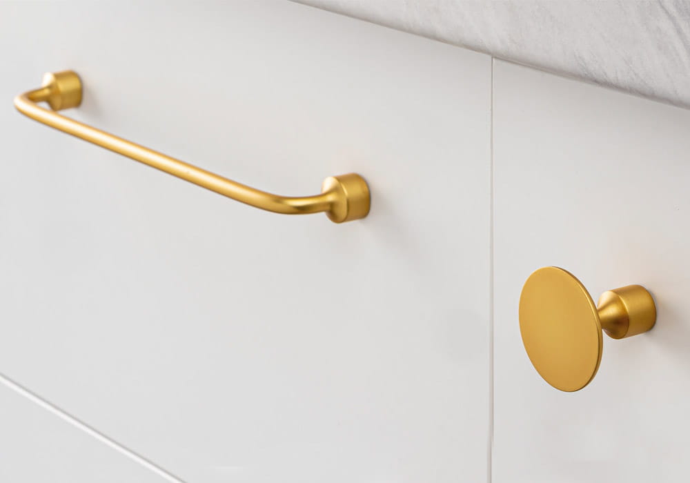 Floid to elegancka czarna gałka wykonana ze znalu i zaprojektowana przez Franka Person. Dzięki subtelnemu minimalistycznemu wzornictwu w pełni integruje się ze wszystkimi typami mebli w sypialniach, garderobach, łazienkach, kuchniach i biurach, dodając odrobinę estetyki vintage. Ta okrągła gałka ma cylindryczną stopkę, która po zamontowaniu na szufladach i drzwiach szafek nadaje jej proste, dyskretne powietrze. Dostępny w czterech wykończeniach - szczotkowanego złota, matowej czerni, cyny i antycznego mosiądzu - można go łączyć z nieskończoną liczbą kolorów i mebli. Kolekcję Floid tworzą gałki, uchwyty i haczyki ścienne, które w połączeniu ze sobą tworzą idealnie harmonijne otoczenie.