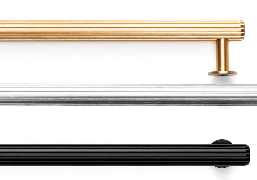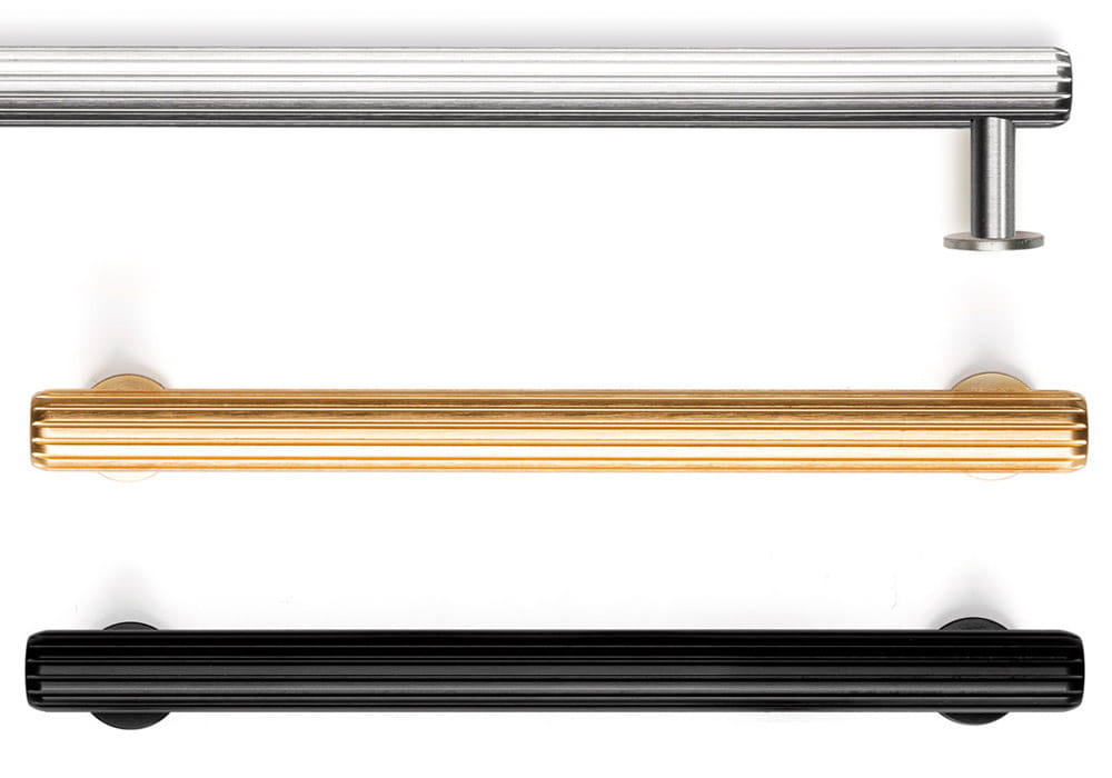 Nazwa tego uchwytu pochodzi od słowa „Rille”, które oznacza szczelinę lub bruzdę. Sloty to właśnie esencja tego projektu, element, od którego zależy jego funkcjonalność. Tworząc go, projektantka Patricia Roig chciała dodać charakterystyczny element tak prostemu kształtowi, jak cylinder, aby nadać mu wizualną osobowość, jednocześnie poprawiając jego przyczepność. Uchwyt Rille jest idealny, aby dodać odrobinę nowoczesności do wszystkich rodzajów obszarów. Ma elegancki wygląd z zakrzywionymi liniami i maksymalną funkcjonalnością. Długa wersja może dostosować się do rustykalnego otoczenia, które wymaga większej obecności i solidności, aby zrównoważyć inne elementy w sypialniach, salonach lub kuchniach. Pomimo swojej silnej obecności, aluminium sprawia,