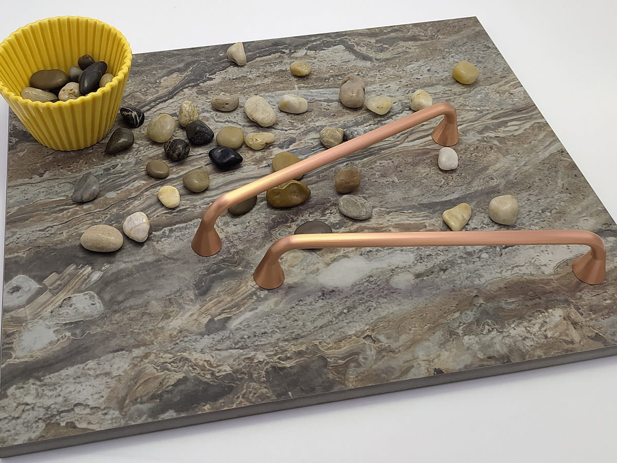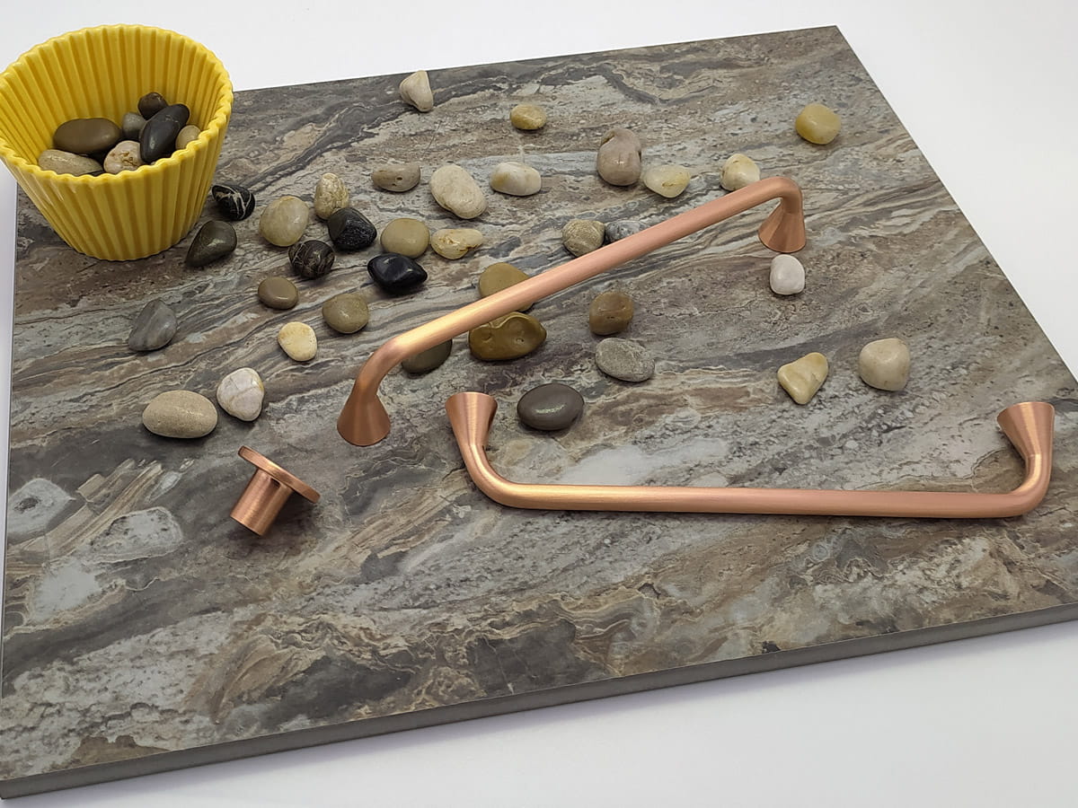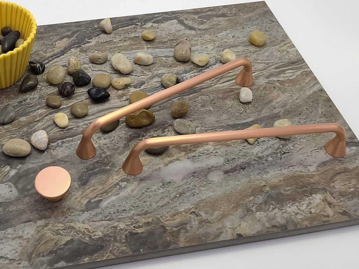 Przemysłowa estetyka uchwytu Bella, sprawia że idealnie pasuje do wielu współczesnych stylów (industrialny, nordic, vintage), a także w bardziej neutralnym otoczeniu. Zaokrąglone, stożkowe kształty są bardzo funkcjonalne i przyjemne w dotyku. Jest dostępny w jednym rozmiarze, który pasuje do mebli kuchennych, łazienkowych i garderoby, sypialni dziecięcych i szafek biurowych o dużych lub średnich rozmiarach. Cztery różne wykończenia (matowa czerń, grafitowa szarość, szczotkowana miedź i szczotkowane złoto) dają mu wiele możliwości łączenia z szafkami, szufladami i wszelkiego rodzaju nowoczesnymi tonami i trendami, zwłaszcza jaśniejszymi kolorami i wykończeniami z drewna. Uchwyt Bella ładnie współgra z gałką VIEFE Como 0168 (produkty powiązane)