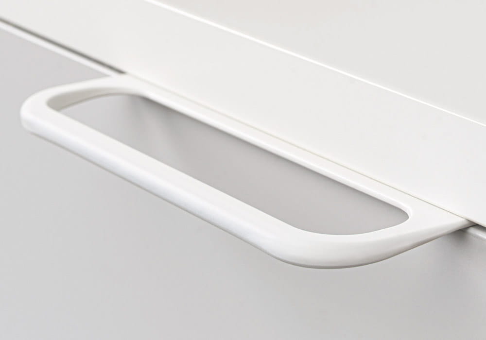 Wszechstronna rękojeść zaprojektowana przez Bernata Lloncha, z podstawą ze znalu i dostępna w czterech wykończeniach: szczotkowany nikiel, mosiądz, matowa biel, matowa czerń i omszona szarość. Obręcz to uchwyt o doskonałym pozycjonowaniu, wyważony geometrycznie, o zmniejszonych wymiarach i maksymalnych możliwościach. Jego proste zaokrąglone linie szczególnie dobrze komponują się z szafkami i meblami biurowymi. Dobrze sprawdza się przy grubościach drzwi od 19 do 23 mm, pojedynczo lub w zestawie, gdy mamy do czynienia z szufladami o dużych gabarytach. Korzystny chwyt i minimalistyczny ton linii sprawiają, że jest to ergonomiczne i wyróżniające się akcesorium, odpowiednie do eklektycznych stylów dekoracyjnych.
