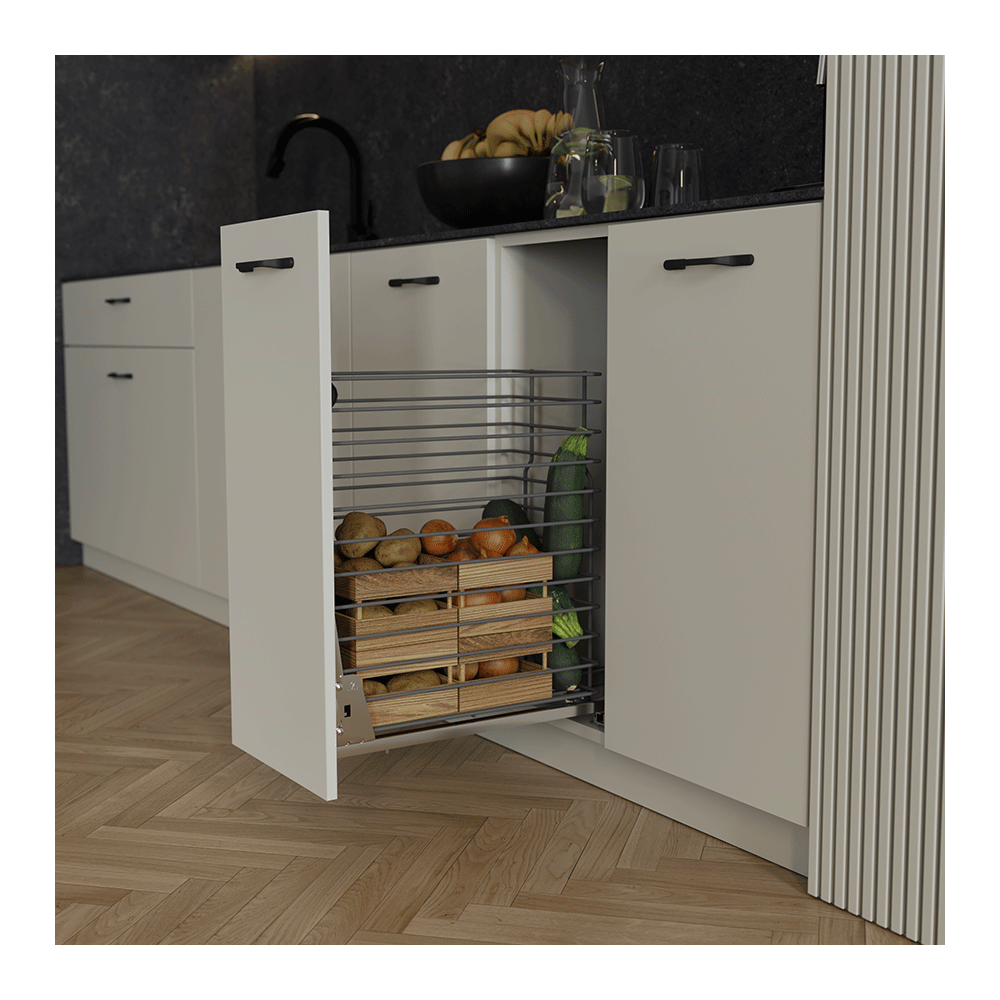 System jezdny dolny wraz z mocowaniem do kosza bocznego multivariant. Szerokość frontu 150-600mm.