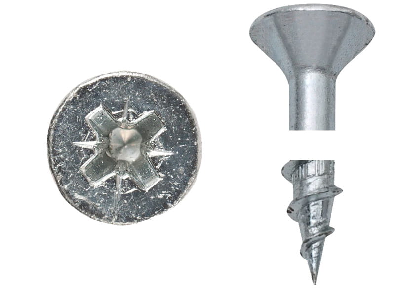 Gwint drobnozwojny/grubozwojny. Gwint drobnozwojny na małych wkrętach zapewnia lepszą przyczepność do płyty wiórowej. Gwint grubozwojny zapewnia szybsze wkręcanie.
