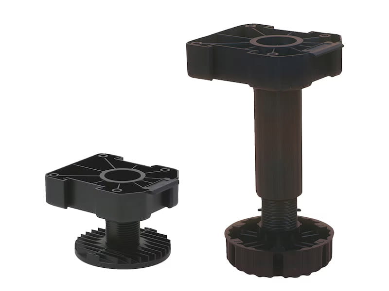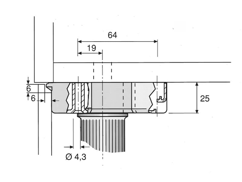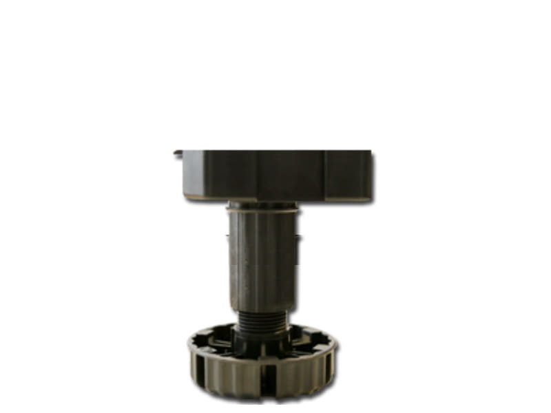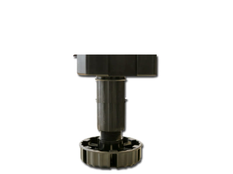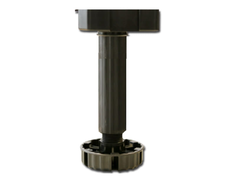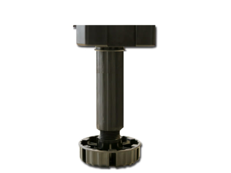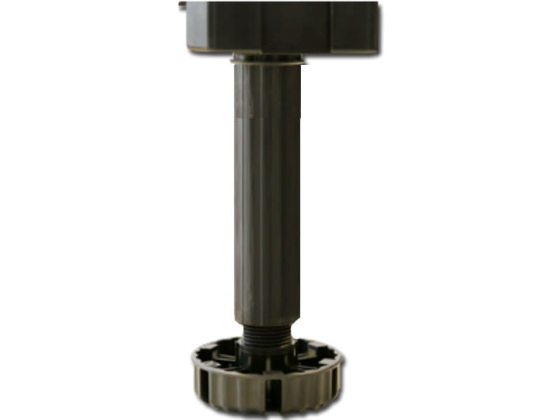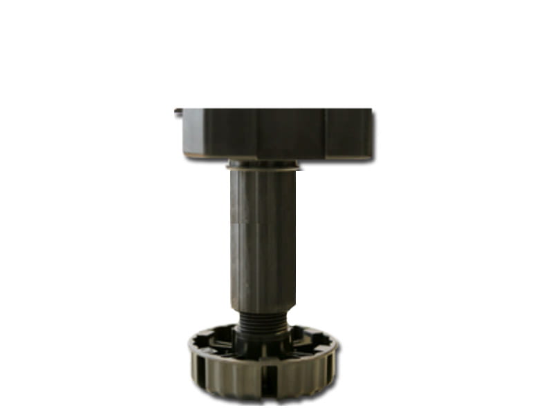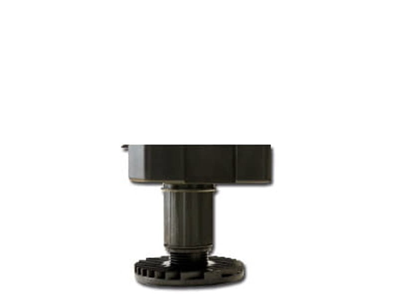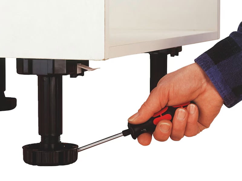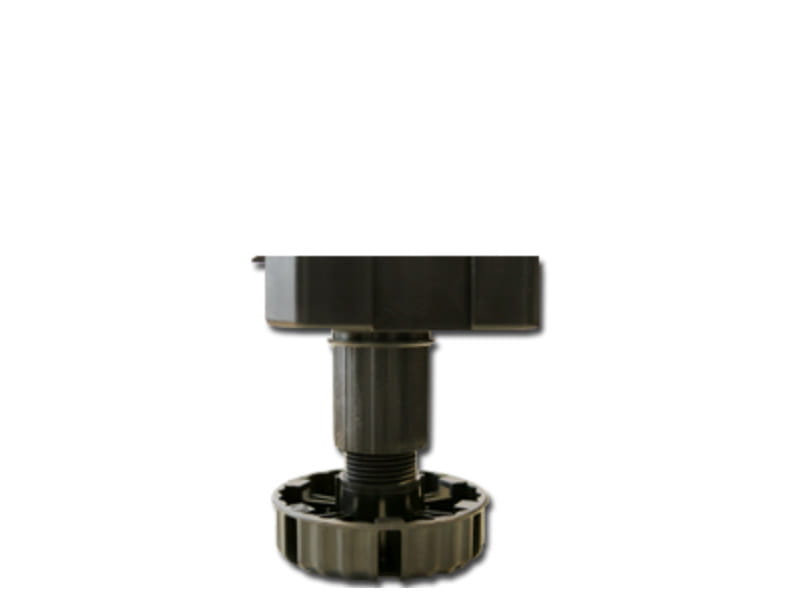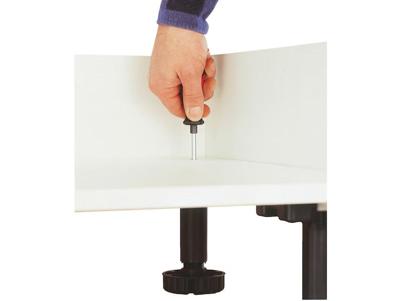 Regulowana nóżka cokołowa do mebli kuchennych. Typ B do mocowania za pomocą wkrętów ø4 mm. Drobny gwint zapewnia bardzo dokładną regulację i przeciwdziała opuszczaniu się nóżki pod wpływem drgań. Pewne podparcie zapewnione przez dużą powierzchnię stopki ø77 mm. Dodatkowe powierzchnie podparcia dla bocznej szafki