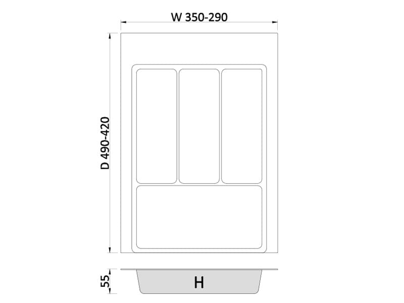 - wygodne przegrody dostosowane do różnych rodzajów sztućców