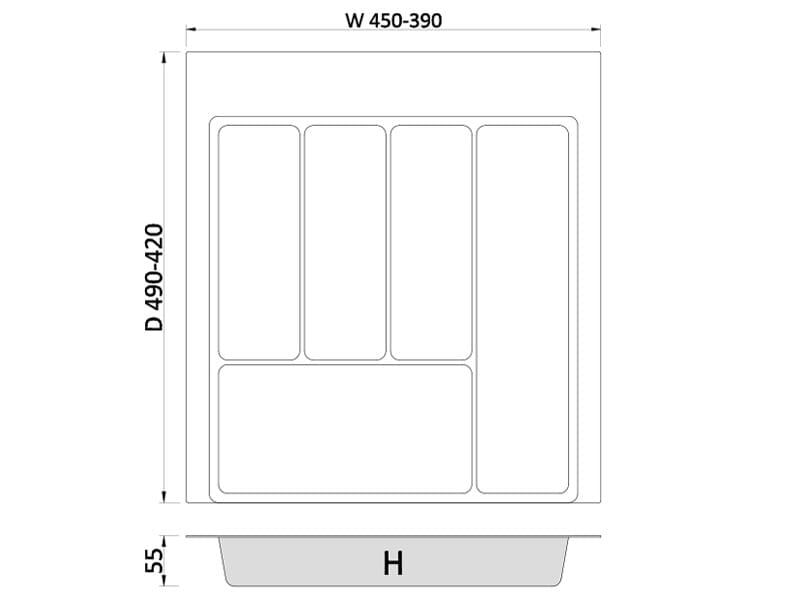 - wygodne przegrody dostosowane do różnych rodzajów sztućców
