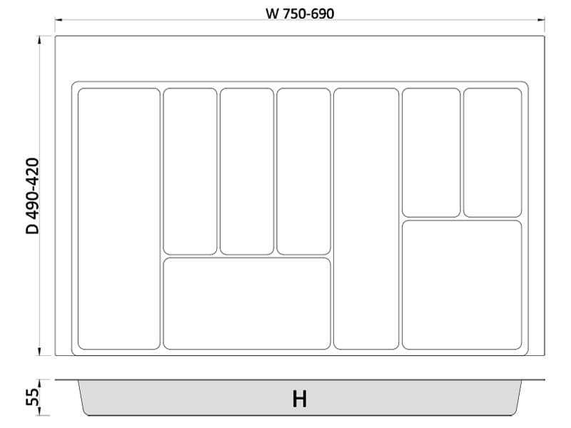 - wygodne przegrody dostosowane do różnych rodzajów sztućców