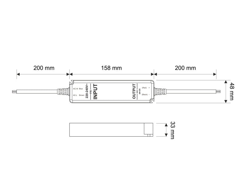 Obudowa wykonana z wytrzymałego tworzywa sztucznego w kolorze białym zapewnia dodatkową izolację i ochronę. Zasilacz wyposażony jest w 20-centymetrowe przewody zasilające i wyjściowe z podwójną izolacją, co ułatwia montaż i zwiększa bezpieczeństwo.
