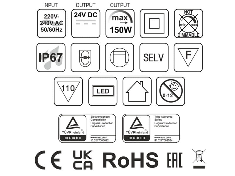 - Certyfikaty TÜV Rheinland, RoHS, CE, UKCA – gwarancja bezpieczeństwa i jakości